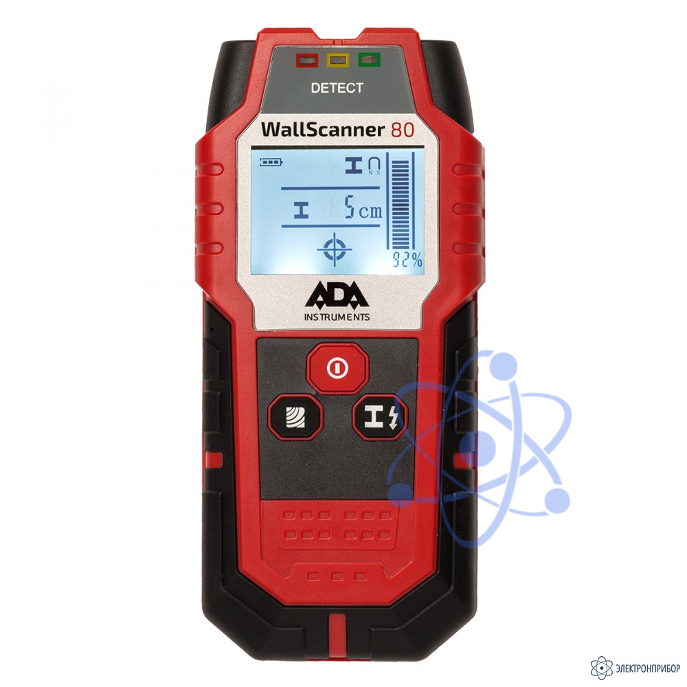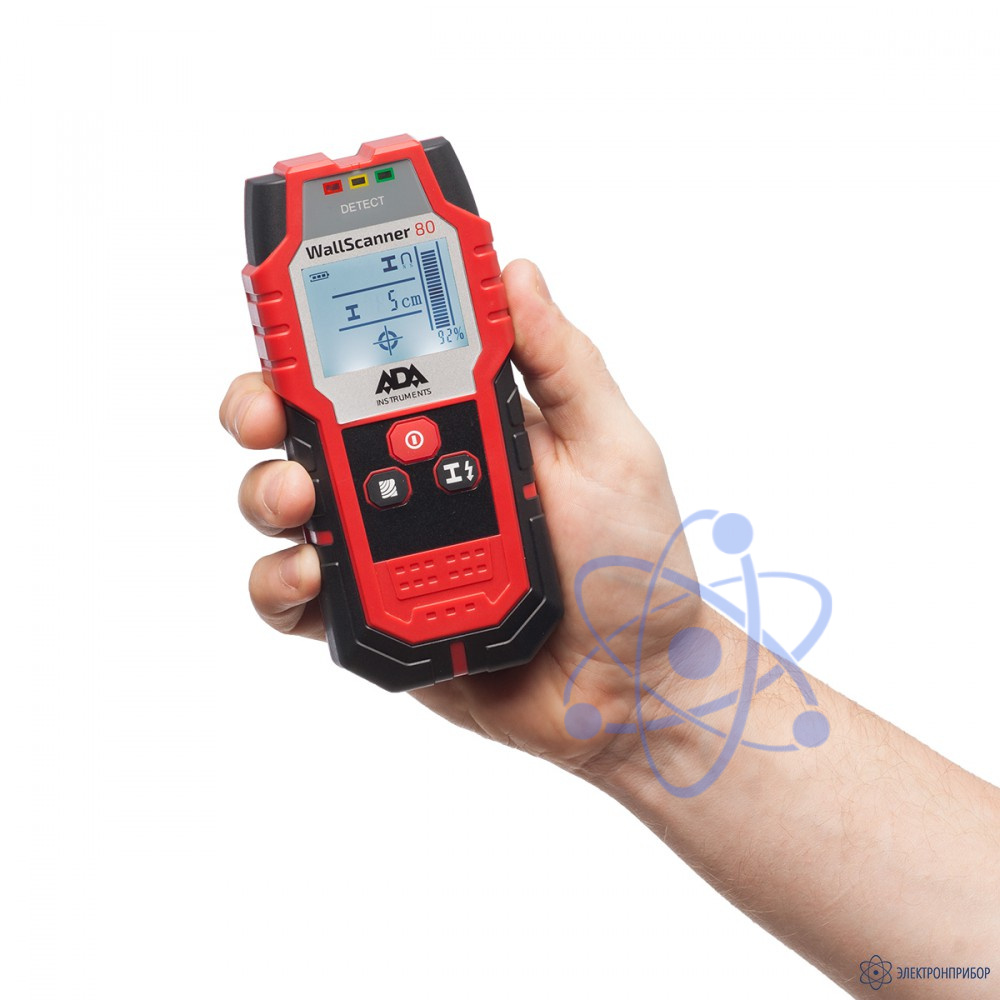 Детектор металла, проводки и дерева ADA Wall Scanner 80 детектор для обнаружения в стенах, полах и потолках металла цветного и черного, проводов под напряжением и деревянных конструкций посредством электрического сигнала.
