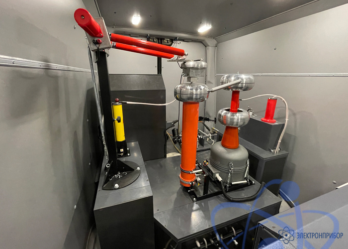 Модуль высоковольтных испытаний предназначен для проведения испытаний электрооборудования напряжением до 35 кВ включительно, а также для испытания силовых кабельных линий класса до 35 кВ включительно с любым типом изоляции. Блок обеспечивает плавное регулирование испытательных напряжений во всем рабочем диапазоне. Электропривод регулятора имеет три скорости изменения напряжения (подъем/снижение). Измерение высокого напряжения осуществляется емкостным (емкостно-резистивным) делителем напряжения и цифровым вольтметром пульта управления.