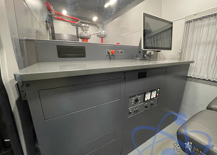 Лаборатория снабжена блокировками для защиты обслуживающего персонала от поражения электрическим током. В отсеке оператора расположен рубильник видимого разрыва сети, а также аварийный выключатель («грибок»), при помощи которого отключается высокое напряжение при возникновении нештатной ситуации.