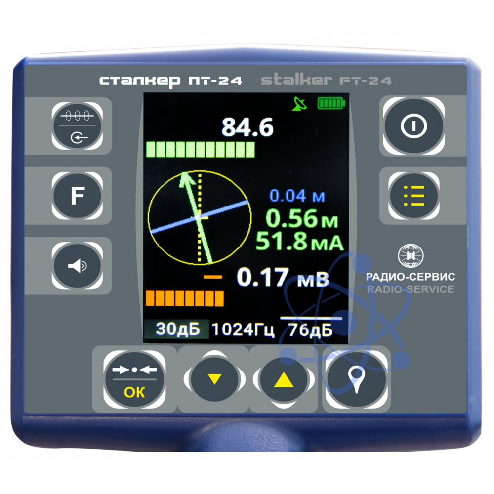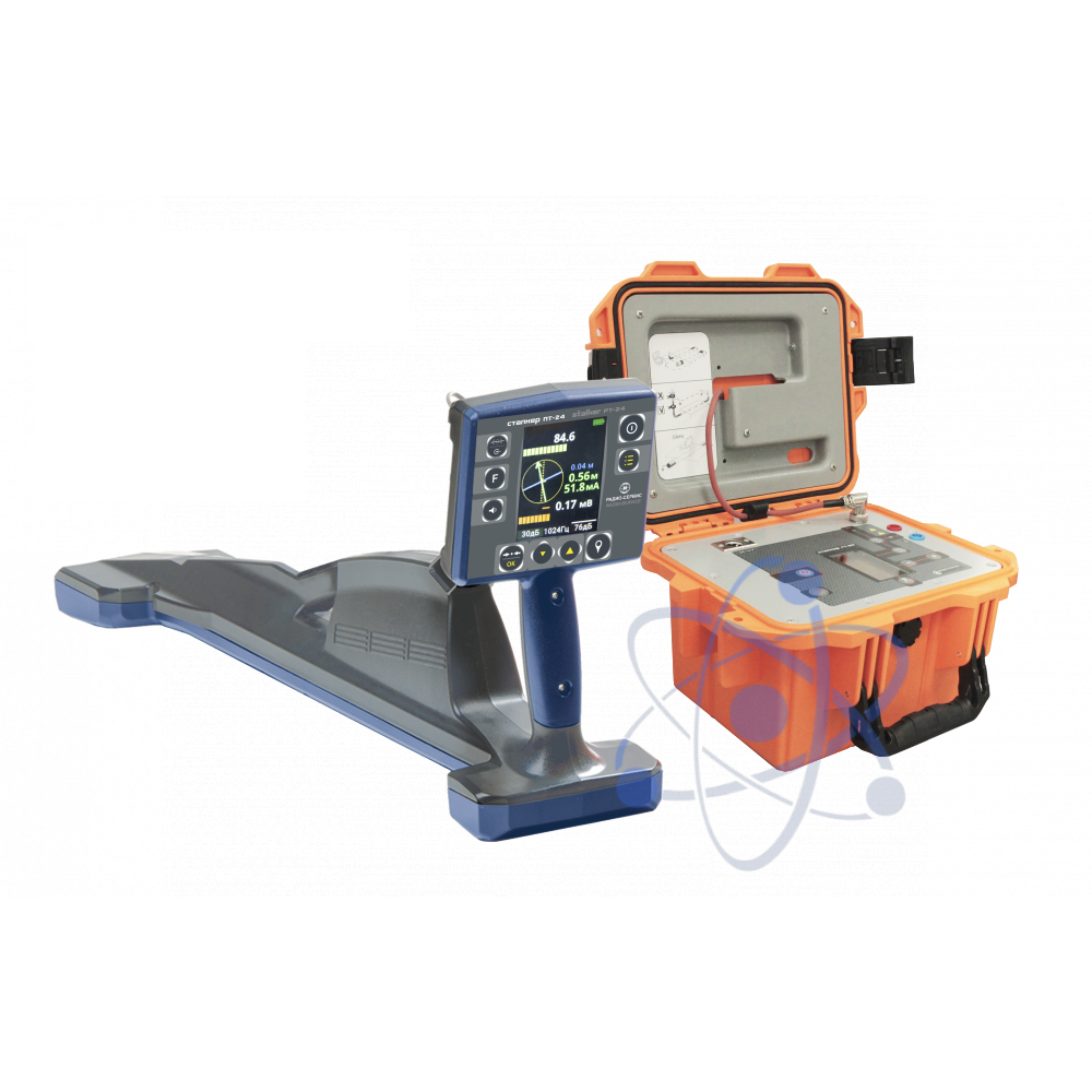 В комплект поставки трассоискателя «Сталкер 80-24» входит генератор ГТ-80 (LFP )и приемник ПТ-24 со встроенным GPS/ГЛОНАСС модулем.