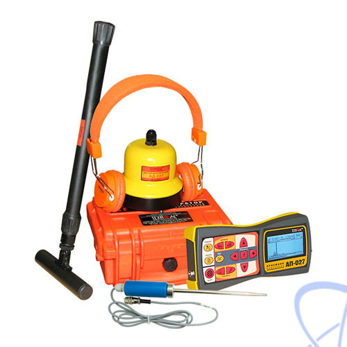 - Наличие в составе течеискателя комплекта АДМ-227 позволяет проводить работы по поиску утечек на трубах малого диаметра и работы по контролю состояния запорной арматуры.