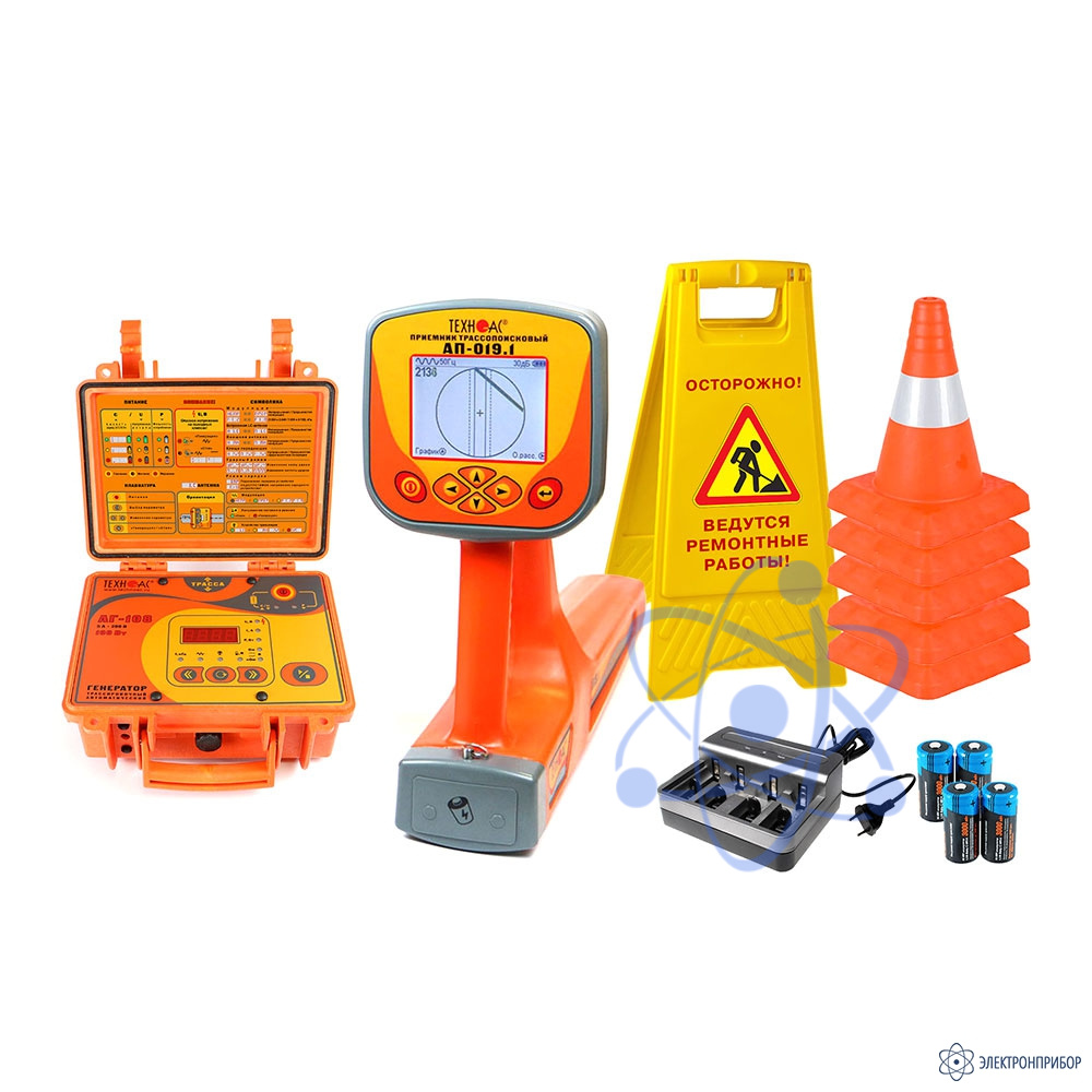 Комплект оснащен новейшим компактным автономным генератором АГ-108 со встроенными элементами питания, дисплеем и встроенной индукционной антенной, для трассировки коммуникации бесконтактным способом.