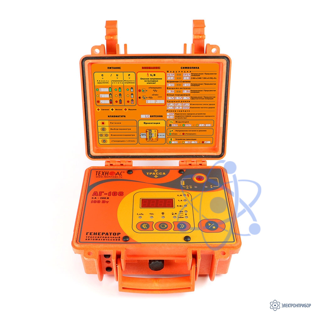 Комплект оснащен новейшим компактным автономным генератором АГ-108 со встроенными элементами питания, дисплеем и встроенной индукционной антенной, для трассировки коммуникации бесконтактным способом.