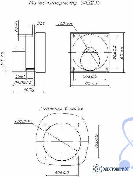 Габаритный чертеж микроамперметра ЭА2230: