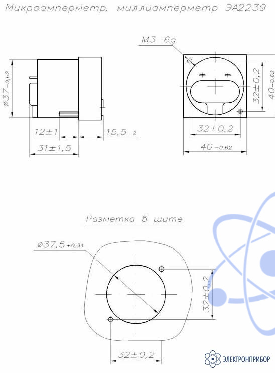 Габаритный чертеж амперметра ЭА2239: