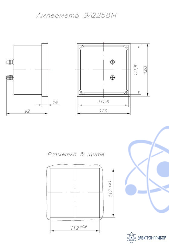 Амперметры ЭА2258М-10 по габаритным размерам быть использованы взамен приборов Э365, Э377, ЭА0702, (габарит по наличнику 120х120 мм, утопленная часть 112х112 мм).