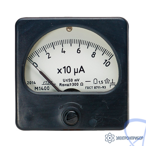 Приборы М1400 – микроамперметры, миллиамперметры постоянного тока, магнитоэлектрической системы с креплением подвижной части на растяжках, с механическим противодействующим моментом, виброустойчивые, ударопрочные. Нормальное положение вертикальное и горизонтальное.