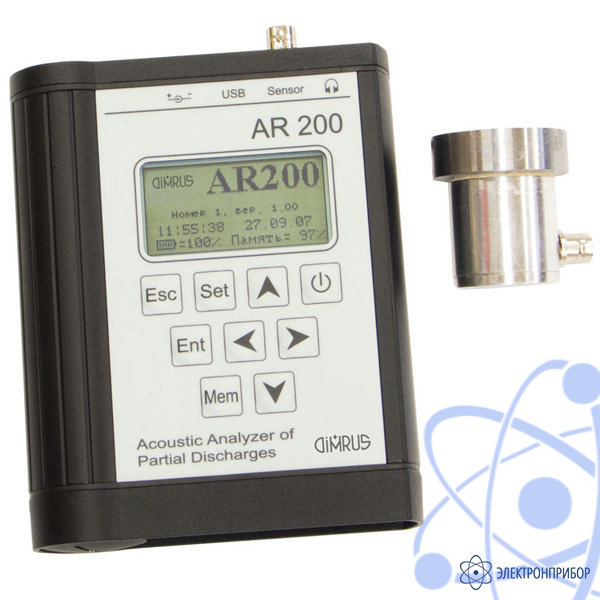 Переносный прибор AR-200 предназначен для регистрации частичных разрядов в высоковольтном оборудовании. Регистрация производится при помощи акустического датчика, который устанавливается на поверхности бака трансформатора, выключателя, кабельной муфты, или другого высоковольтного оборудования.