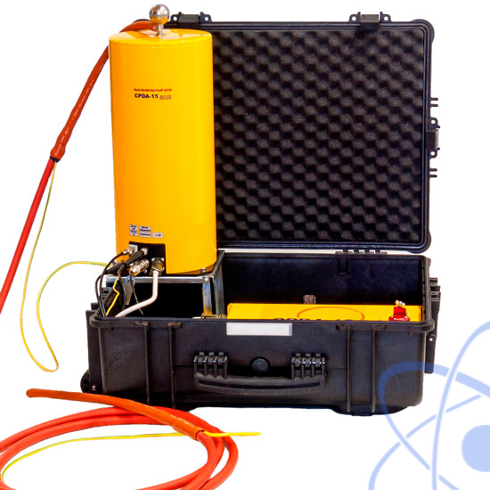 Cистема CPDA-15 состоит из высоковольтного блока в транспортном чемодане и ноутбука.