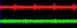 На рисунке приведен пример сигналов частичных разрядов с акустических датчиков, установленных на концевой муфте кабеля 110 кВ с полиэтиленовой изоляцией - (Луч 1, красный) и на участке этого кабеля - (Луч 2, зеленый). Запись сделана за время около 30 дней до пробоя этой муфты.