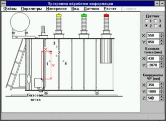 Для этого используется специальное устройство установки четырех датчиков (антенна), которое размещается на баке трансформатора в точках максимального акустического сигнала, и запускается специальная программа автоматического вычисления координат расположения дефекта изоляции.