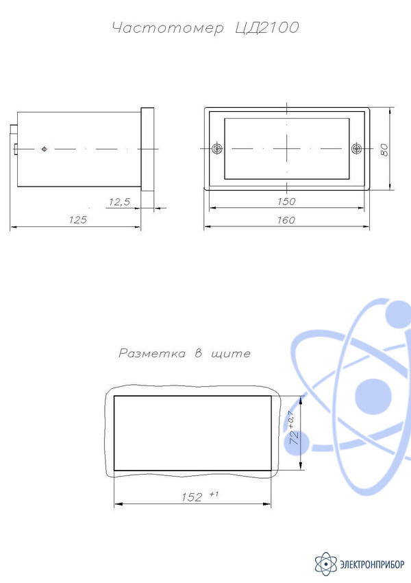 Габаритный чертеж частотомера ЦД2100:
