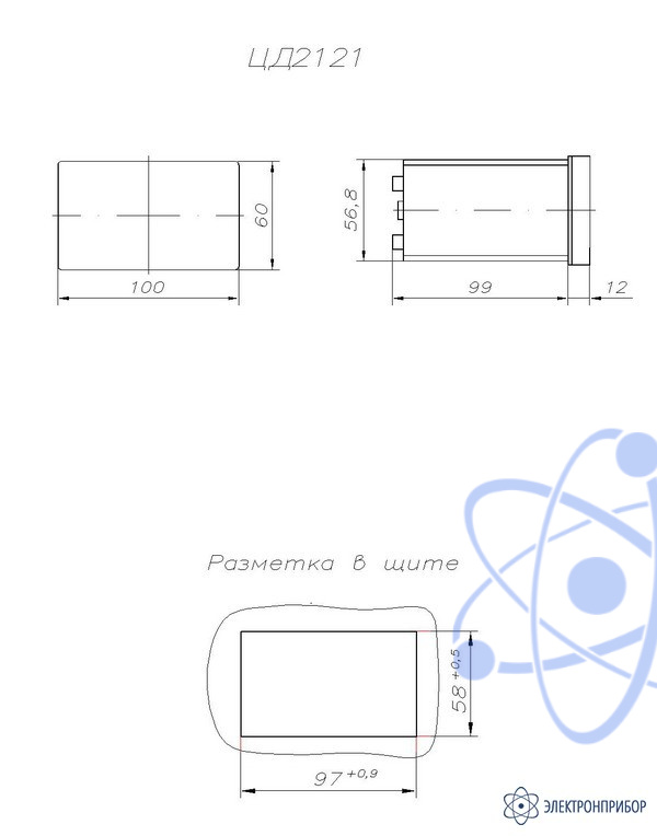 Габаритный чертеж частотомера ЦД2121: