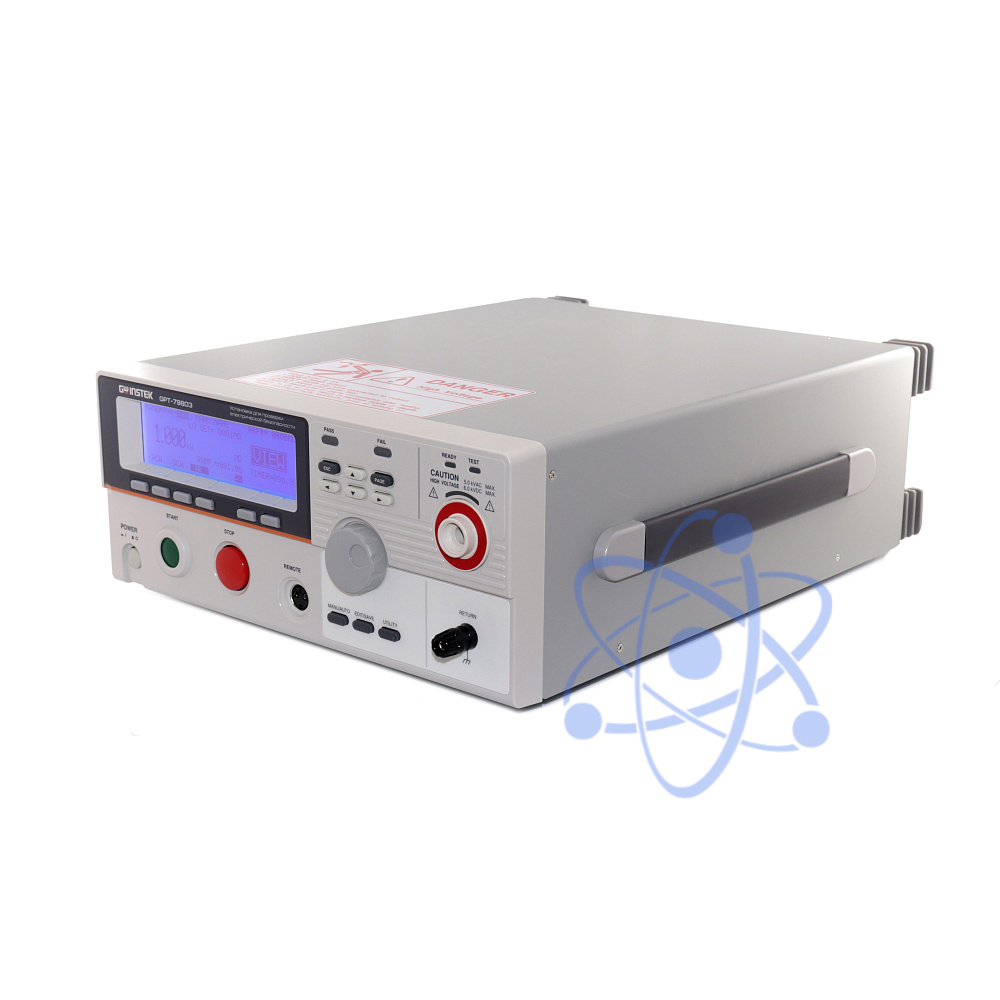 Пробойная установка GPT 79803 предназначена для проверки электротехнической продукции по стандартам электробезопасности. Представляет собой многофункциональный прибор с возможностью производить тест на пробой изоляции и измерение сопротивления изоляции электрических устройств. Тестовые испытания выполняются переменным и постоянным током с максимально допустимым напряжением 5 и 6кВ.