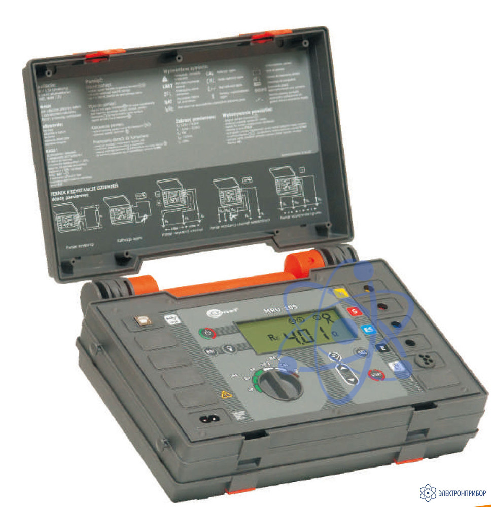 Предназначен для измерения сопротивления заземляющих устройств и удельного сопротивления грунта. Благодаря современной конструкции прибор характеризуется хорошими эргономичными показателями и широкими измерительными функциями (в том числе анализ условий, отрицательно влияющих на точность полученных результатов). Прибор MRU-105 укомплектован токоизмерительными клещами для проведения измерений заземляющих устройств без разъединения заземлителей. Уникальная конструкция катушек с измерительными проводами позволяет разматывать провод с сохранением контакта с зондом.