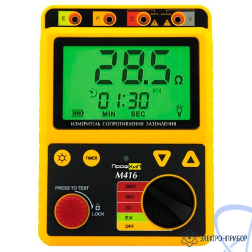 Измеритель сопротивления заземления ПрофКиП М416 является специализированным устройством для измерения сопротивления заземления в диапазоне от 0 Ом до 200 Ом. Измеритель сопротивления заземления ПрофКиП М416 обладает повышенным уровнем точности и позволяет производить измерения для любых контуров заземления, имеет прочный пластиковый корпус и большой LCD дисплей. Измеритель сопротивления заземления ПрофКиП М416 позволяет убедиться в исправности контура заземления любой электрической системы, от бытовой до промышленной.
