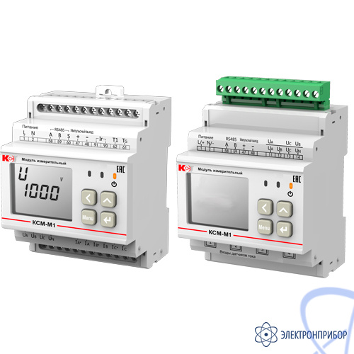 - КСМ-М1-1: измеряет напряжение, ток, мощность, частоту, энергию, гармоники в трехфазной сети, ток утечки и температуру. Имеет 1 интерфейс RS-485, импульсный выход. Погрешность измерения: приведенная тока, напряжения, мощности, активной энергии ±0,5 %; реактивной мощности ±1,5 %; коэффициента мощности ±0,5 %; абсолютная частота ±0,01 %.