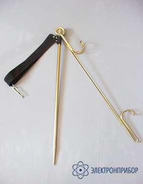 После погружения стержня заземлителя в грунт держатель может быть установлен в вертикальное положение и закреплен с помощью фиксатора. Таким образом несколькими заземлителями и канатом можно оградить опасную зону. Широкий прочный ремень облегчает переноску заземлителя и извлечение его из земли.
