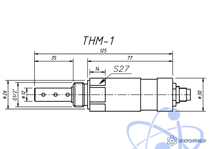 Габаритные и установочные размеры датчиков влагосодержания приведены на рисунке. Основное различие заключается в размере посадочной резьбы: ½’ для THM-1 и ¾’ для THM-2 и размерах отсека сенсоров.