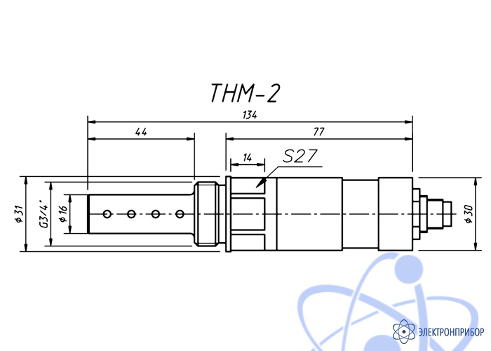 Габаритные и установочные размеры датчиков влагосодержания приведены на рисунке. Основное различие заключается в размере посадочной резьбы: ½’ для THM-1 и ¾’ для THM-2 и размерах отсека сенсоров.