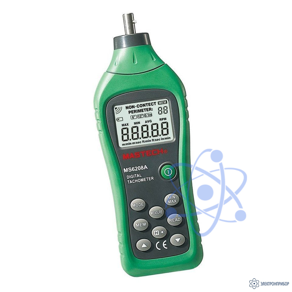 Цифровой тахометр Mastech MS6208A предназначен для измерения скорости вращения любых вращающихся устройств, позволяющих безопасно для оператора и прибора произвести измерение прикосновением к вращающейся поверхности. Он обладает высокой надежностью и высокими показателями безопасности. Основной компонент измерителя представляет собой компактный, интегрированный чип высокой производительности. Тахометр показывает скорость вращения от 50 до19999 оборотов в минуту . ЖК-дисплей с подсветкой позволит делать и считывать измерения в условиях низкой освещенности.
