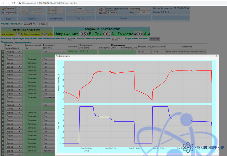 • Построение графиков процесса обслуживания поможет выявить неисправности АКБ, например: дефектные элементы, пробой сепараторов, износ элементов.