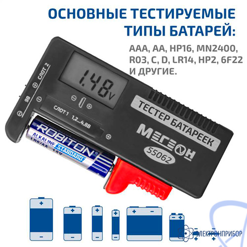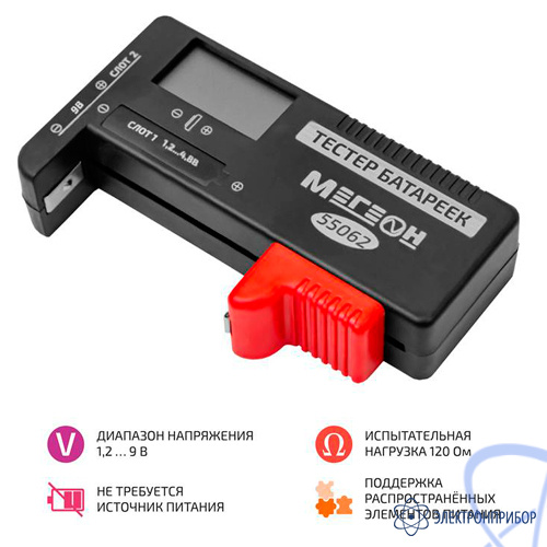 Особенности тестера батареек и аккумуляторов МЕГЕОН 55062: