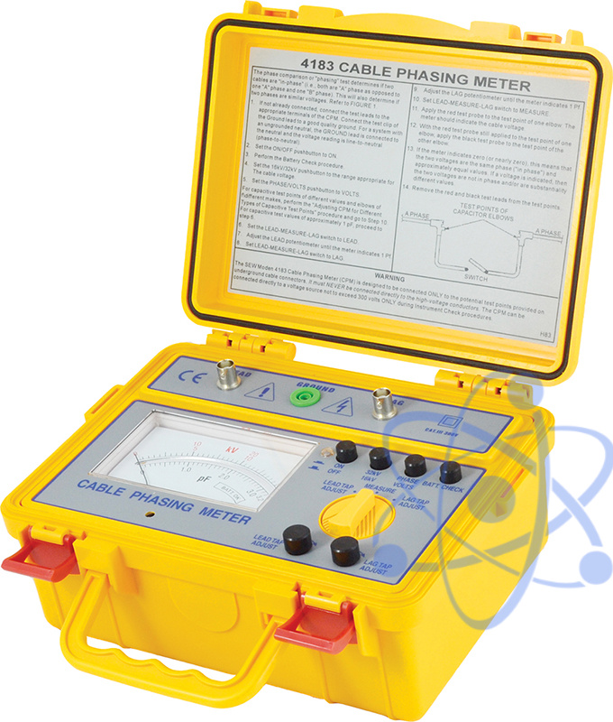 Измеритель 4183 СР напряжения и определения порядка чередования фаз относится к новому поколению измерительных приборов, предназначенных для измерения параметров сетей и устройств электропитания. Благодаря своему конструктивному и схемотехническому исполнению он обеспечивает возможность определения синхронности чередования фаз в двух различных кабелях 3-х фазной сети электропитания. Прибор позволяет проводить измерения переменного напряжения на двух пределах: 0 - 16 кВ; 0 - 32 кВ. Выбор необходимых режимов и пределов измерения легко осуществляется с помощью 4-х кнопок на передней панели прибора. Прибор позволяет оперативно проводить измерения на электроустановках и подземных энергосооружениях, в том числе в случаях отсутствия информации об их текущем рабочем напряжении. Удобное исполнение входных терминалов, в совокупности с удобным и наглядным стрелочным индикатором c зеркальной шкалой, позволяют успешно использовать фазовый тестер 4183 СР не только как средство измерения, но и применять его в целях обучения при подготовке электротехнического персонала.