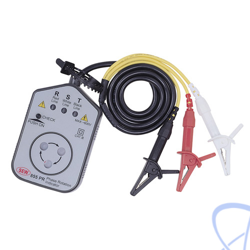 Измеритель порядка чередования фаз 855 PR: Диапазон рабочих напряжений 200…600 В; 50/60 Гц; Две функции в одном приборе: определение наличия и порядка чередования фаз; Комплектуется удобными зажимами типа «крокодил», позволяющими легко подключаться к выводам различной конфигурации; Позволяет проводить измерения в 3-фазных цепях в широком диапазоне напряжений; Обеспечена высокая степень электробезопасности; Компактное исполнение, удобные в эксплуатации; Масса 530 г.