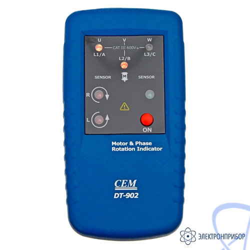 Описание индикатора порядка подключения обмоток электродвигателя и порядка чередования фаз DT-902: