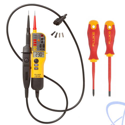 Описание комплекта тестера напряжения/целостности с ЖК-дисплеем с переключаемой нагрузкой и отверток Fluke T130VDE/SD:
