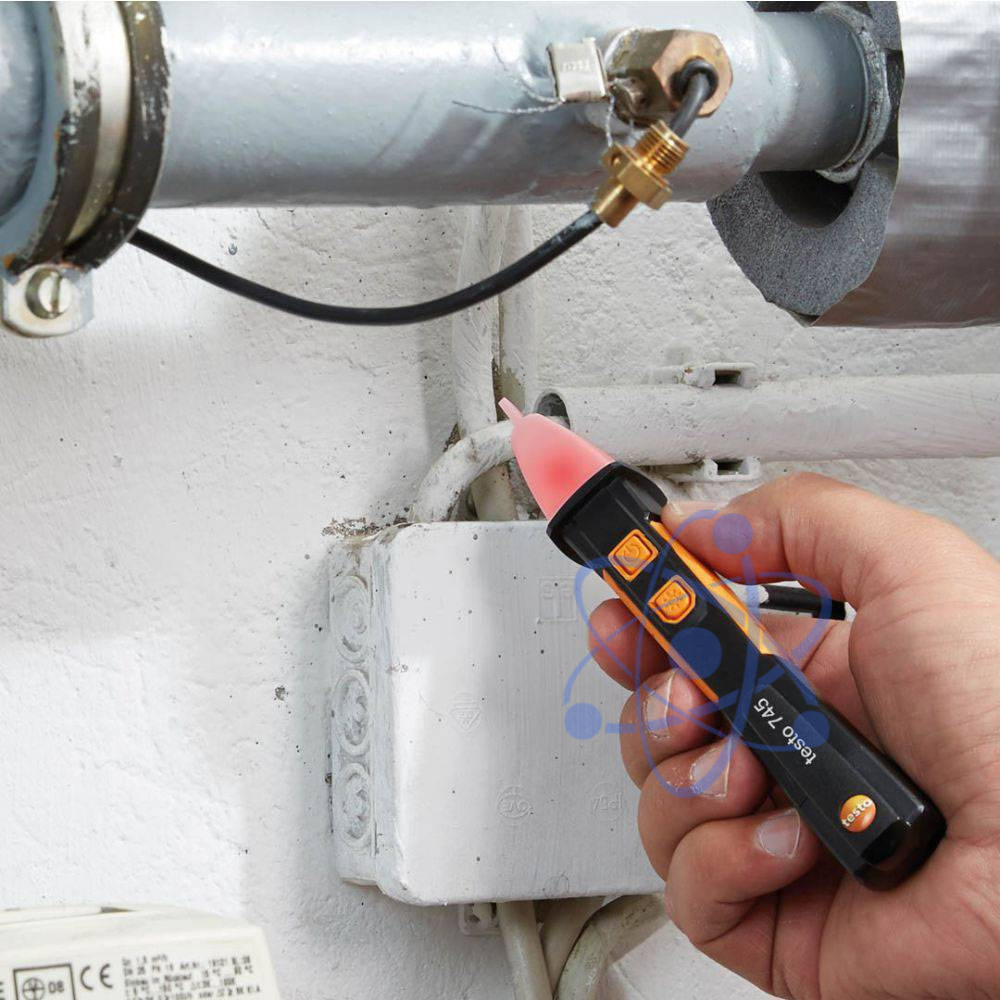 testo 745 – бесконтактный детектор напряжения в диапазоне до 1000 В, оптимально подходит для быстрого проведения предварительной проверки предполагаемых причин неисправности. При наличии напряжения testo 745 подает четкий предупреждающий звуковой и визуальный сигнал. В целях повышения надежности работы детектор напряжения оснащен фильтром высокочастотных помех, а также является водо- и пыленепроницаемым, и соответствует классу защиты IP 67.