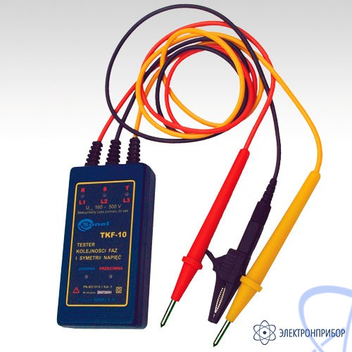 Указатель TKF-10 предназначен для проверки энергетических трехфазных установок в диапазоне междуфазных напряжений от 160 до 500В. Питание измерителя осуществляется от измеряемой установки (отдельного питания не требуется). Прибор показывает наличие напряжения всех фаз; контролирует симметрию всех напряжений и отсутствие симметрии и определяет правильность чередования фаз. Все результаты отражаются посредством ярких, хорошо видимых светодиодов.