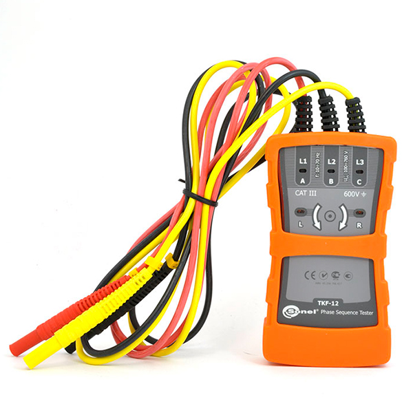 Указатель правильности чередования фаз TKF-12 является современным прибором, который характеризуется высоким качеством а также простотой использования. Предназначен для определения наличия напряжения трехфазных установок в диапазоне от 120 В до 690 В, а также индикации последовательности чередования фаз. Все результаты отражаются посредством высококонтрастных светодиодов.