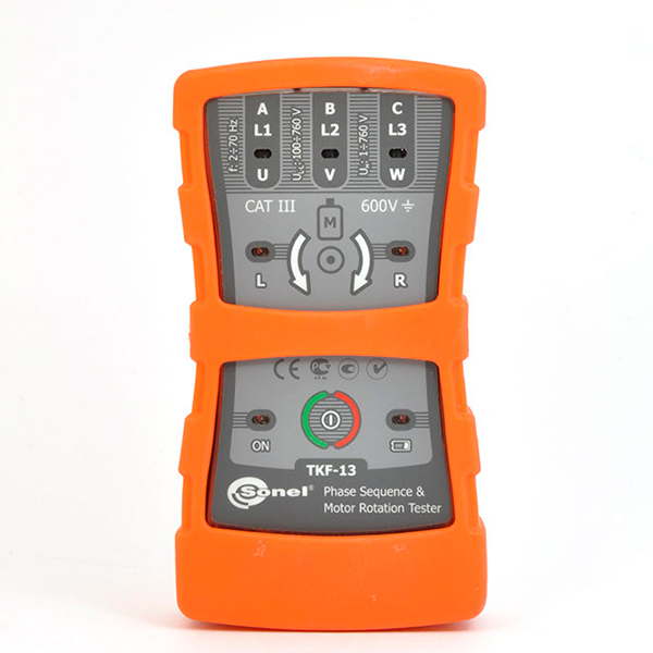 Указатель правильности чередования фаз TKF-13 является современным прибором, который характеризуется высоким качеством, а также простотой использования. Предназначен для определения наличия напряжения трехфазных установок в диапазоне от 120 В до 760 В, индикации последовательности чередования фаз. Позволяет бесконтактным методом определять направления вращения электродвигателей и проверять правильность подключения фаз. Все результаты отражаются посредством высококонтрастных светодиодов. |