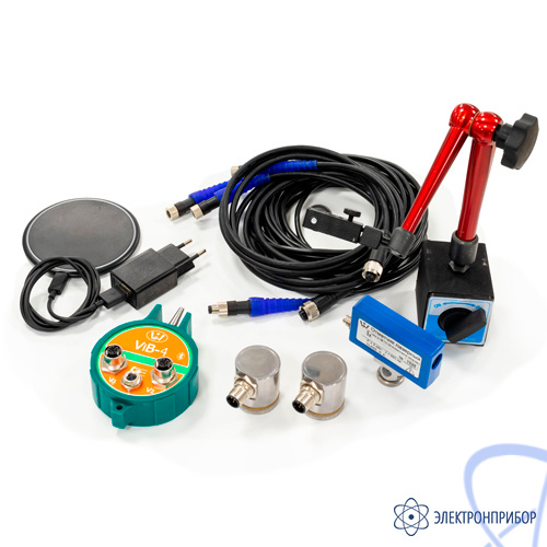 Для проведения двухплоскостной балансировки роторов в приборе ViB-4 используются два внешних датчика вибрации и лазерный отметчик фазы, устанавливаемый на регулируемой магнитной стойке.