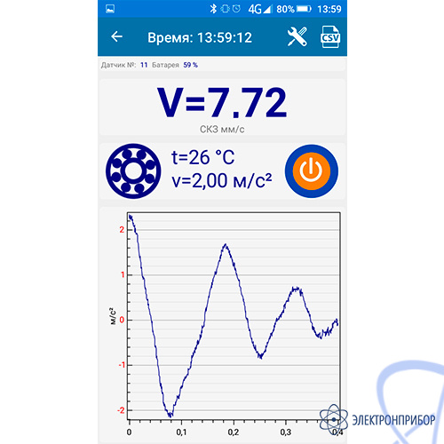 - регистрация временной формы сигнала от встроенного акселерометра в трех разных диапазонах частот;