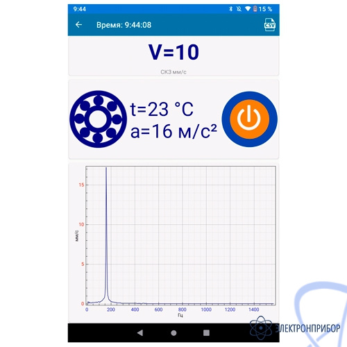 Форма представления информации на экране смартфона соответствует представлению на экране виброметра.