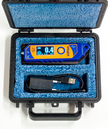 - ViPen имеет удобный металлический корпус, экран закрыт ударопрочным стеклом. Вес прибора всего 140 грамм;