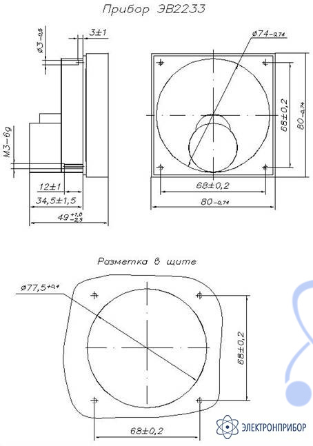 Cо специальной шкалой: «Вольтметр ЭВ2233.Х, ТУ 4223-001-05798310-99», где Х – исполнение по конструкторской документации;