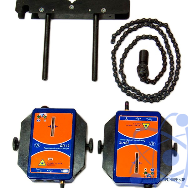 Кроме проведения балансировки роторов в собственных опорах при помощи полного комплекта прибора ViAna-4 можно проводить и центровку валов агрегатов. Для этого в состав комплекта включается лазерный центровщик марки ДП-12.