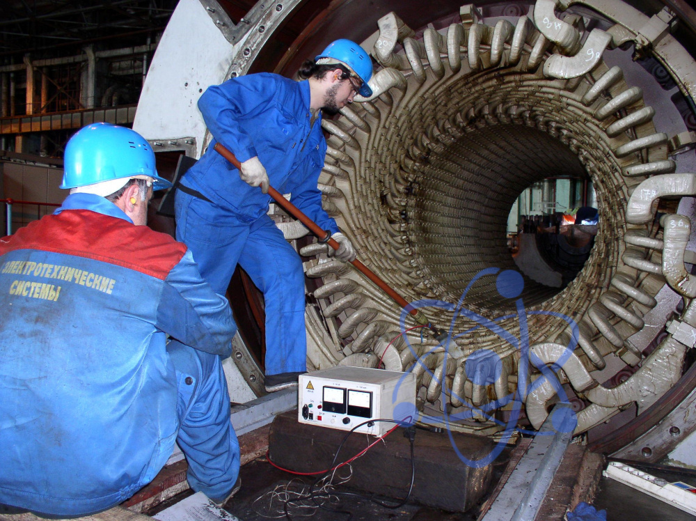 - для поиска и обнаружения во время капитальных ремонтов, в том числе после полной замены обмотки, скрытых дефектов изоляции лобовых частей, соединительных шин и бандажных металлических колец обмоток статоров (истирание, трещины, увлажнение, незавершенный пробой и т.п.);