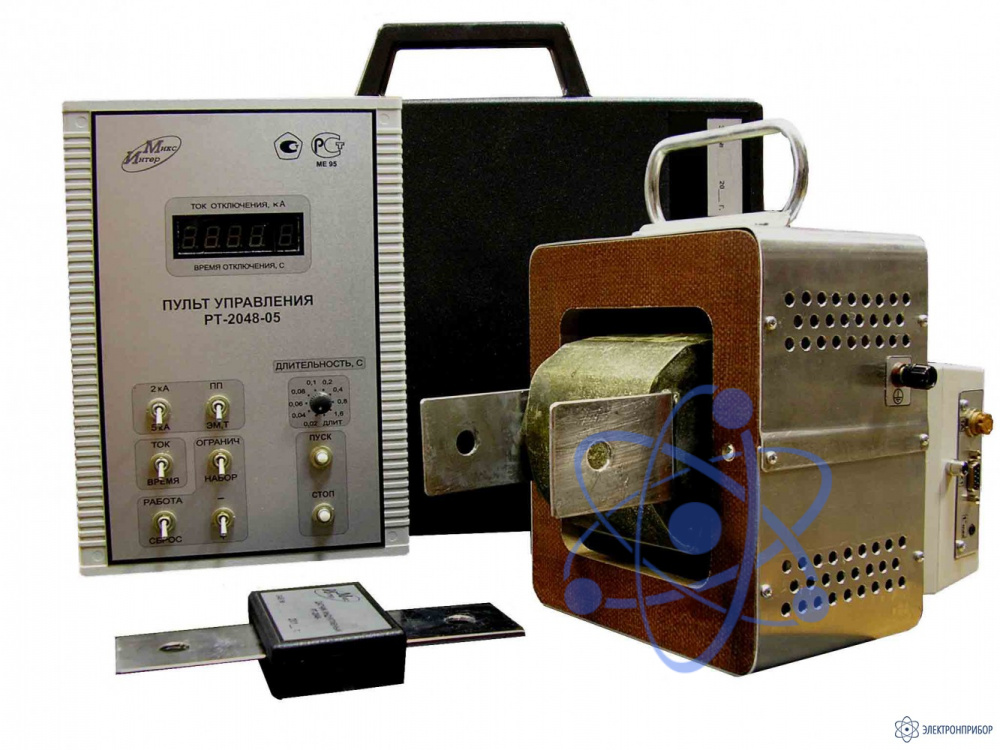 Комплект РТ-2048-05 (наименование до сертификации РТ-2048М-2) предназначен для измерения действующего (эффективного) значения силы тока срабатывания максимальных расцепителей при испытаниях автоматических выключателей (АВ) переменного тока в сетях электроснабжения до 1000В промышленной частотой 50 Гц. Комплект РТ2048-05 может быть использован при прогрузке трех видов расцепителей: максимального мгновенного действия (электромагнитного), максимального с обратнозависимой выдержкой времени (теплового) и полупроводникового.