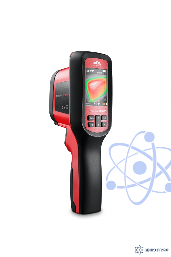 Электронное устройство для измерения температуры в ИК спектре (прибор) ADA TemPro VISION предназначен для измерения и визуализации распределения температур на поверхностях объекта исследования бесконтактным методом. Прибор позволяет фиксировать видимое и инфракрасное (ИК) изображения вместе с измеренными/дополнительными данными и сохранять их на карте памяти для последующего анализа полученных данных, а также составления отчетов. Режим выделения точек с максимальной и минимальной температурами упрощает работу.