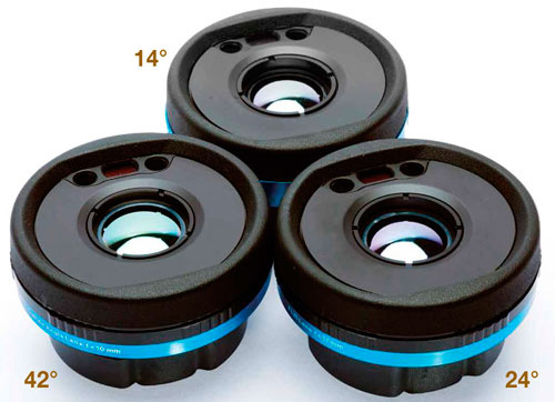Тепловизор FLIR T530 доступен в шести исполнениях в зависимости от интеллектуальных сменных объективов AutoCal, которые идут в комплекте:
