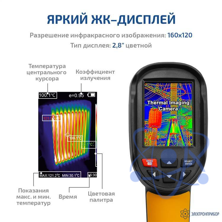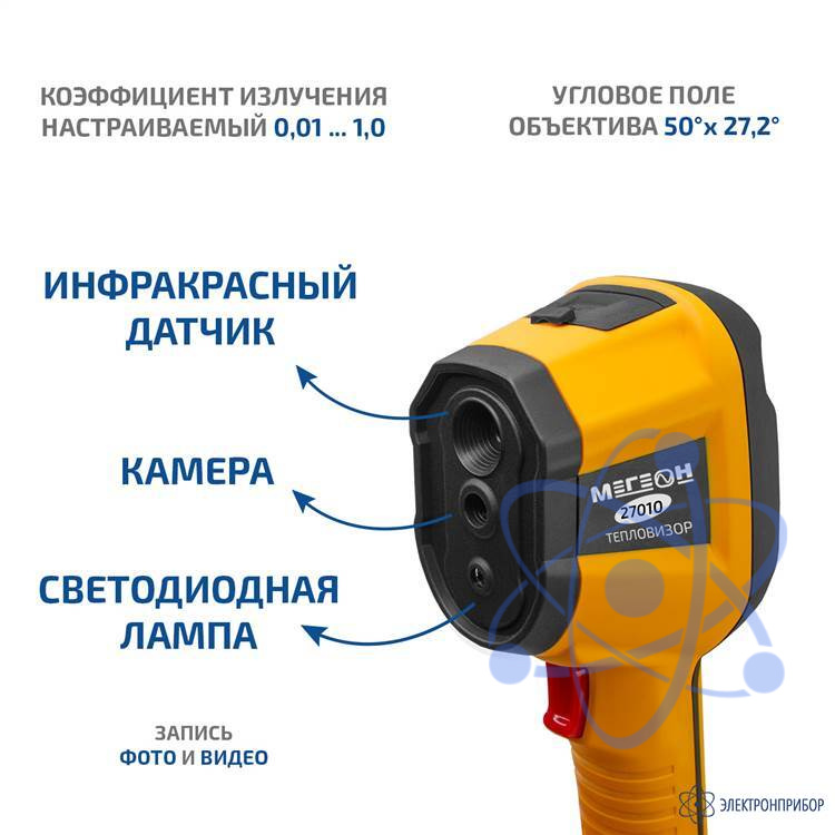 Тепловизор МЕГЕОН 27010 - новинка в линейке тепловизоров МЕГЕОН, прошла адаптацию под нюансы эксплуатации российского рынка. Позволяет специалисту быстро провести диагностику, измерив температуру в диапазоне от -25 до +550 градусов. Управление состоит из минимального количества меню и кнопок, поэтому использование понятно, элементарно и не вызовет трудностей. Память 4 Гб вмещает до 20 000 отчётов с данными для последующей обработки. Встроенная цифровая камера даёт возможность выбирать степень совмещения изображений в видимом и инфракрасном спектре, без проблем определять объекты при анализе результатов, облегчает привязку материалов и составление отчётности. Светодиодная подсветка обеспечит измерения в условиях плохой видимости. Рукоятка с рифлённой поверхностью надежно лежит в руке. Наручный ремешок для ношения и питание от многократно перезаряжаемого аккумулятора будут неоспоримо по достоинству оценены профессионалами. Для зарядки и подключения к ПК предусмотрен порт формата Micro-USB. ПО для операционных систем семейства Windows находится на внутреннем носителе и доступно для инсталляции при первом же сопряжении прибора к компьютеру.