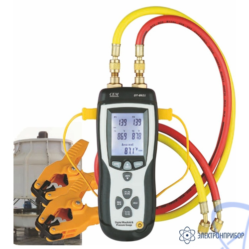DT-8921 - это универсальный профессиональный цифровой манометр для испытания хладагента. Корпус и оболочка, а также соединительные клеммы долговечны и адаптированы к ударам высокого и низкого давления, а также сложным измерительным средам. DT-8921 объединяет в себе цифров манометр высокого давления, термопару типа К, измеритель температуры окружающей среды, модуль Bluetooth. Данное устройство подключается и передает результаты измерений на мобильное устройство на базе ОС Android или IOS, а затем с помощью программного обеспечения позволяет анализировать эффективность работы системы кондиционирования воздуха (определять переохлаждение и перегрев кондиционера и прочее).