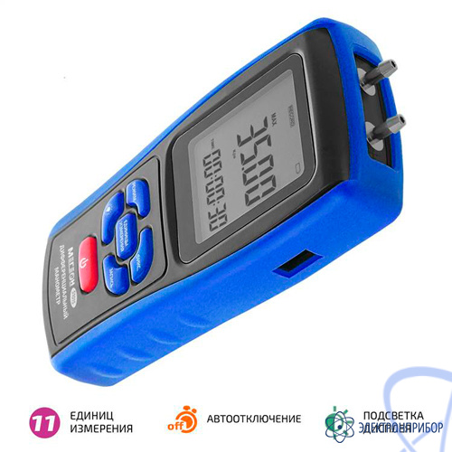 Прибор МЕГЕОН 51015 - цифровой универсальный манометр, который предназначен для измерения давления. При настройке и эксплуатации различных технических средств часто возникает необходимость измерения дифференциального давления. Изделия МЕГЕОН выгодно отличаются от существующих аналогов широкими функциональными возможностями и могут применяться для измерения уровня жидкостей в закрытых сосудах, расхода газов, контроль загрязненности фильтров и измерения избыточного давления в чистых помещения. Приведенный перечень далеко неполный. Среди которых можно отметить: функцию удержания данных и фиксации максимального, минимального и среднего значений значительно облегчат выполнение измерений. Устройство позволяет отображать давление в разных единицах измерения. Функция подсветки дисплея позволяет эксплуатировать прибор в слабоосвещенных помещениях.