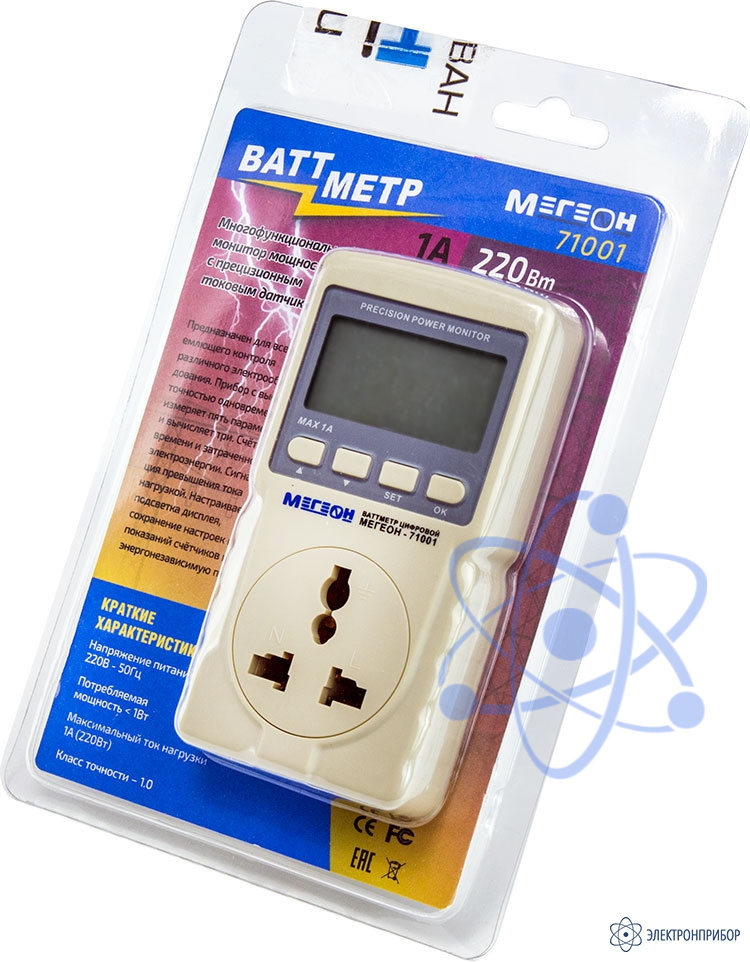 Новая модель ваттметра от торговой марки Мегеон - Мегеон 71001 представляет собой портативный регистратор затраченной электроэнергии. Благодаря использованию качественных компонентов в аппаратной части, новинка демонстрирует впечатляющие технические характеристики. Еще одной отличительной особенностью, выделяющей данный прибор на фоне аналогичных устройств, является встроенный ЖК-дисплей с интегрированной подсветкой. Использование ваттметра Мегеон 71001 позволяет осуществлять непрерывный контроль различного электрооборудования. Данный прибор дает возможность измерять показатели потребляемой энергии, тока, напряжения и частоты с высокой точностью. Благодаря небольшому весу и компактным габаритам, Мегеон 71001 может использоваться как в домашних, так и в лабораторных условиях.
