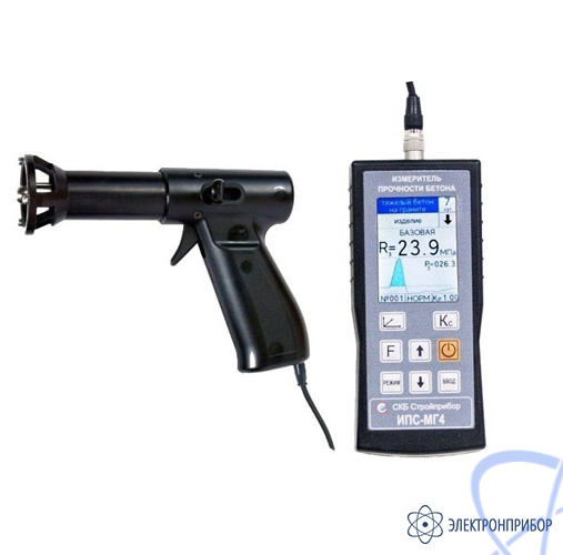 Приборы ИПС-МГ4.01, ИПС-МГ4.03, ИПС-МГ4.01 (цветной дисплей), ИПС-МГ4.03 (цветной дисплей) и ИПС-МГ4.04 (цветной дисплей) предназначены для определения прочности бетона по ГОСТ 22690, на основе предварительно установленной зависимости между прочностью бетона, определенной при испытании образцов в прессе и измеренным ускорением, возникающим при взаимодействии индентора измерителя с бетонным образцом, при постоянной энергии удара (Е=0,12 Дж).